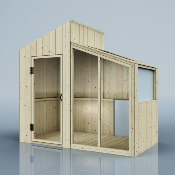 The Freya playhouse isn’t all design over function though there is plenty of space to play inside and it can be personalised to create your child’s haven and happy place. There is a canvas covered window at the back and 2 ways to get inside; the clear Perspex door and a crawl through hatch, again with a canvas cover.